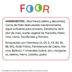 Jibia fresca (aleta y descartes), Carne de Pollo deshuesada mecánicamente, Agua suficiente para el proceso, Zanahoria, Almidón de Maíz, Aceite Vegetal de Maravilla, Metionina, Lisina, Tocoferoles y Romero.